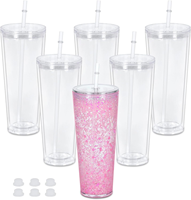 Groothandel 20Oz Platte Rand Rechte Roestvrijstalen Sublimatie Tuimelaar Met Metalen Stro En Rubberen Bodem En Plastic Stro