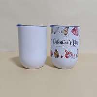 12 Oz Sublimatie Vacuüm Geïsoleerd Roestvrij Staal Rechte Mokken Witte Ei Vorm Wijnbekers Tumbler Met Schuifdeksel