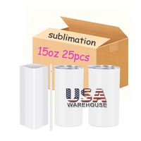 25pcs 15oz Sublimation Tumbler Blanks Bulk Cups Skinny Straight Cup Stainless Steel Double Wall Insulated Water Bottles