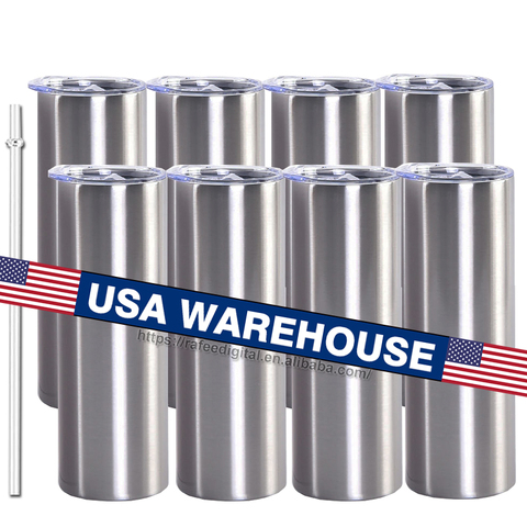 Entrepôt aux États-Unis Vente en gros en vrac 20 oz 20 oz Gobelet Skinny droit en acier inoxydable couleur argent vierge sublimation pour bricolage